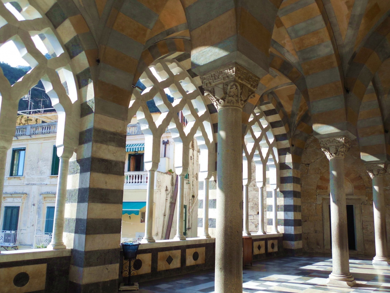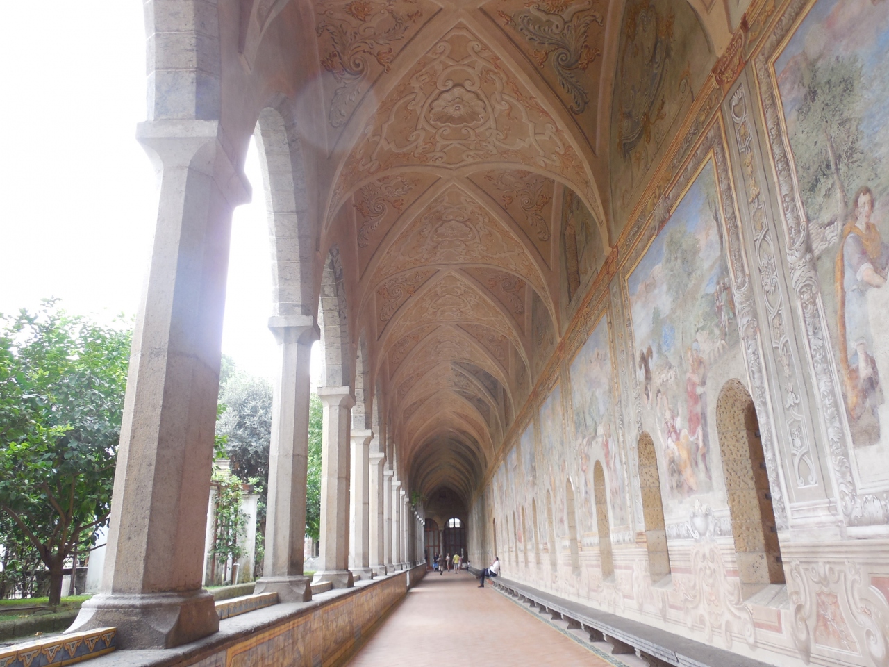 庭を囲んでいる回廊の柱とフレスコ画も美しいので、こちらもじっくりと見たいものです。