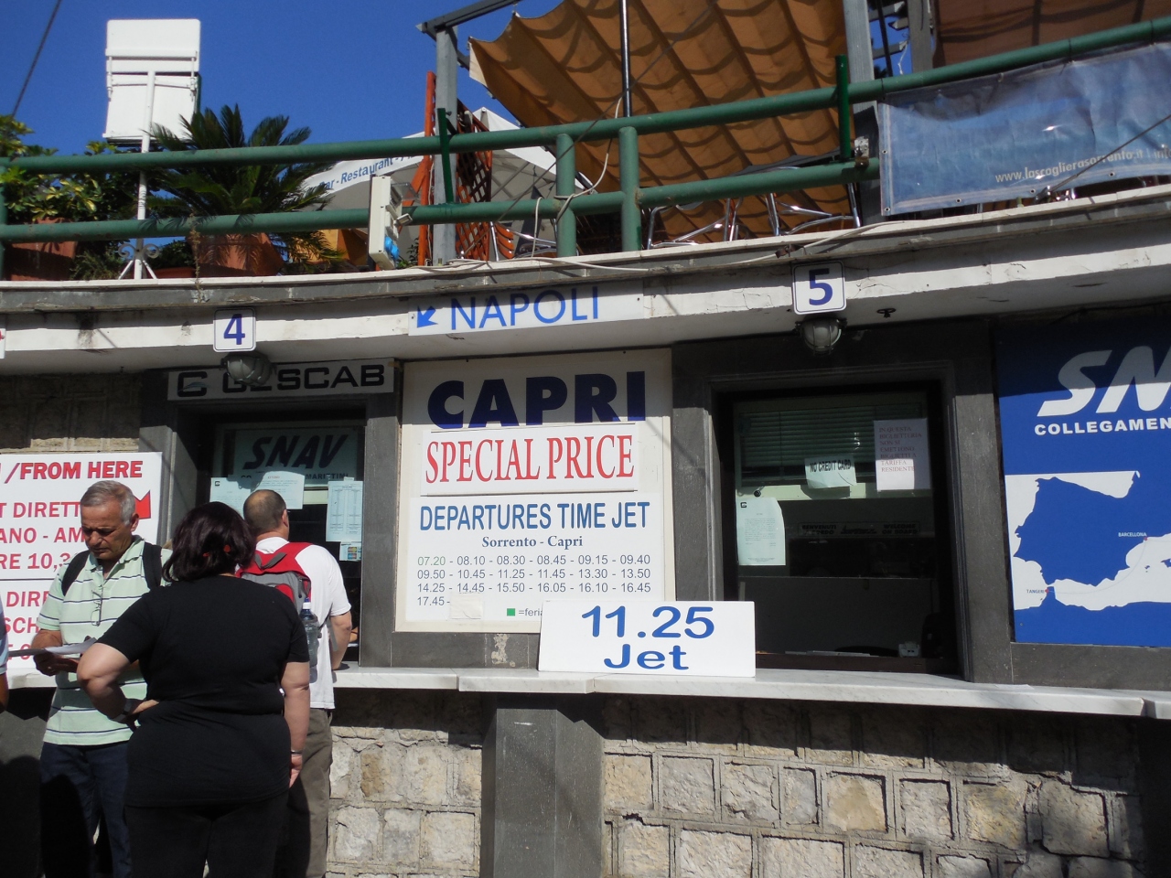 カプリ島行きの船の乗り場は、(私達が乗った船では)チケット売り場から少~し離れていているにも関わらず、チケットはぎりぎりの時間でも売ってくれました。