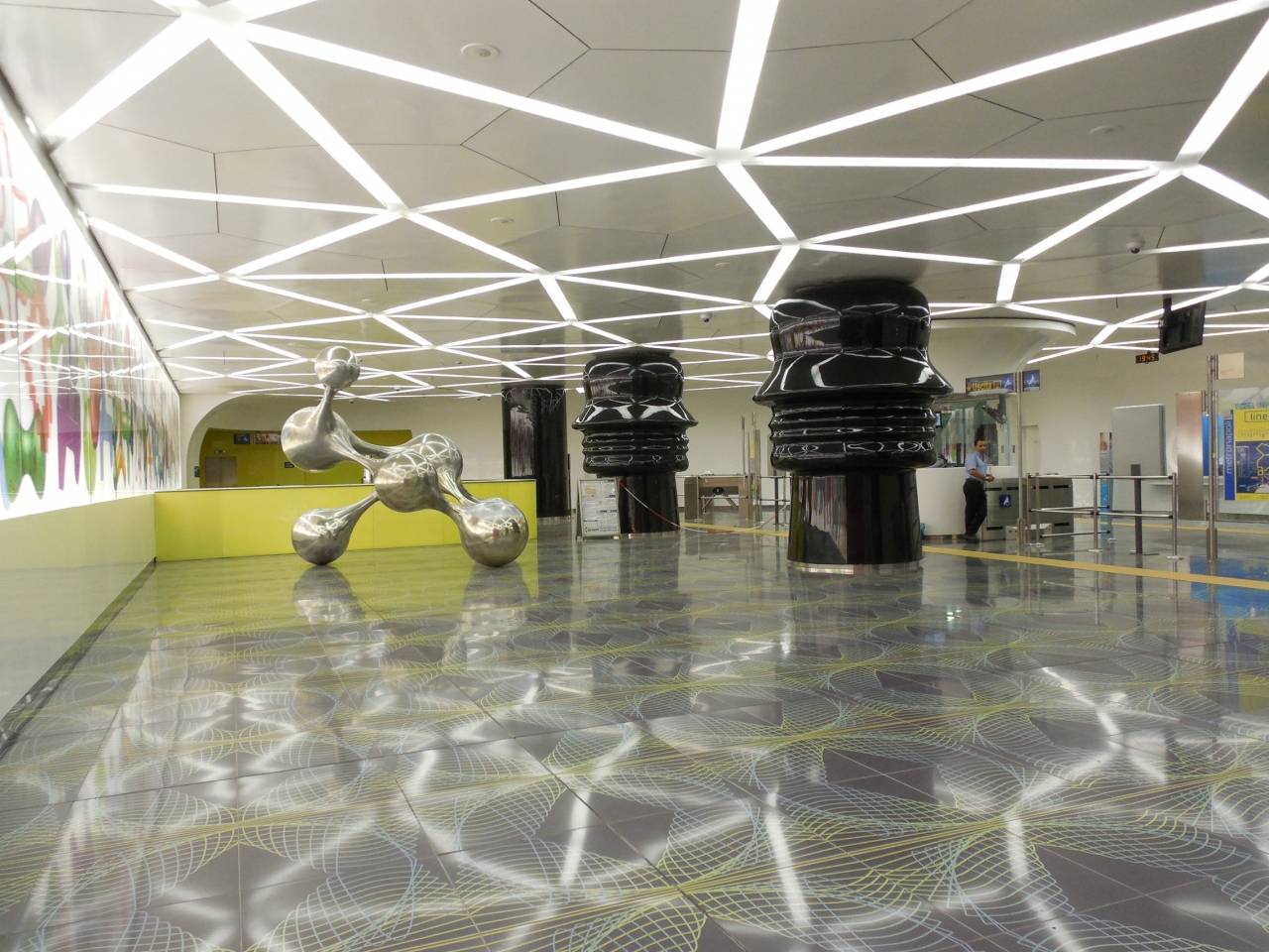 構内はアーティフルで、現代的なオブジェが印象的でした。- 旅行時期