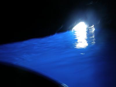 カプリ島の港で船に乗換えて更に小さなボートに乗って洞窟に入ってゆきます。