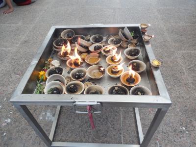 靴を脱いで中に入ると、全体が見えます。観光客も多いですが、地元の人の祈りの場で、たくさんの人がお祈りをしていました。内部は思ってたよりも広く、様々な神様の像がありました。寺院のすぐ右手がパゴダ・ストリートです。- 旅行時期