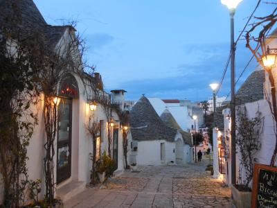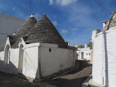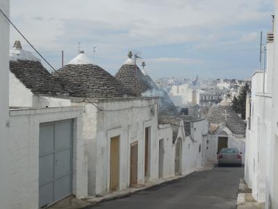 トゥルッリには実際に人が住んでいるものも多く、少し開いたドアからちょっとだけ中が垣間見えたりします。散策をすると色々な形のトゥルッリがあり、変形バージョンや屋根の低いのや、、、独特の世界を楽しめる街並みだと思います。- 旅行時期
