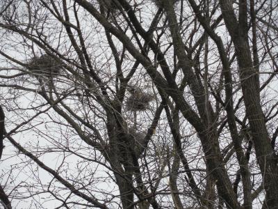 入ってすぐの高い木の上では大きな鳥が営巣していました。ぱっと見で2組はいました。