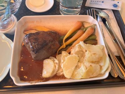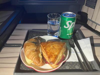 離陸して間もなくすると、食事の用意が始まり、最初にドリンクが出てきまし...