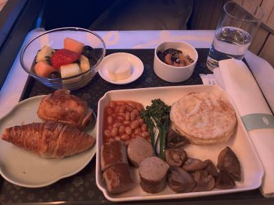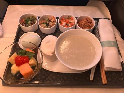 台北到着の1時間半ほど前には、朝食が出てきました。僕はお粥を頼んでみま...