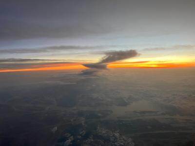 朝食を食べ終えた頃には、台北到着まで1時間を切っており、窓の外には朝焼...