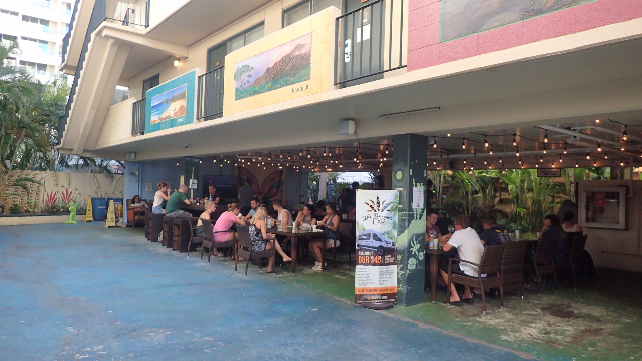 男女混合ドミで1泊$30+$4.56(税・手数料)です。ホノルル動物園のそばにあります。ワイキキの浜辺へは徒歩2分。エアコン、トイレ、シャワー問題なし。治安の不安は感じませんでした。フロントは24時間で、基本的に親切です。ロバーツハワイのシャトルが停まってくれますから、空港への行き帰りも心配なし。外国人女性は男女混合でもビシビシ泊まりますが、女性のみであれば女性専用ドミがいいかもしれません。カップルであればむしろ男女混合ドミで、ベッドが近い方が不安がないと思います。