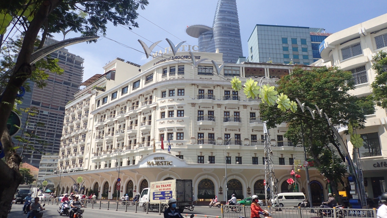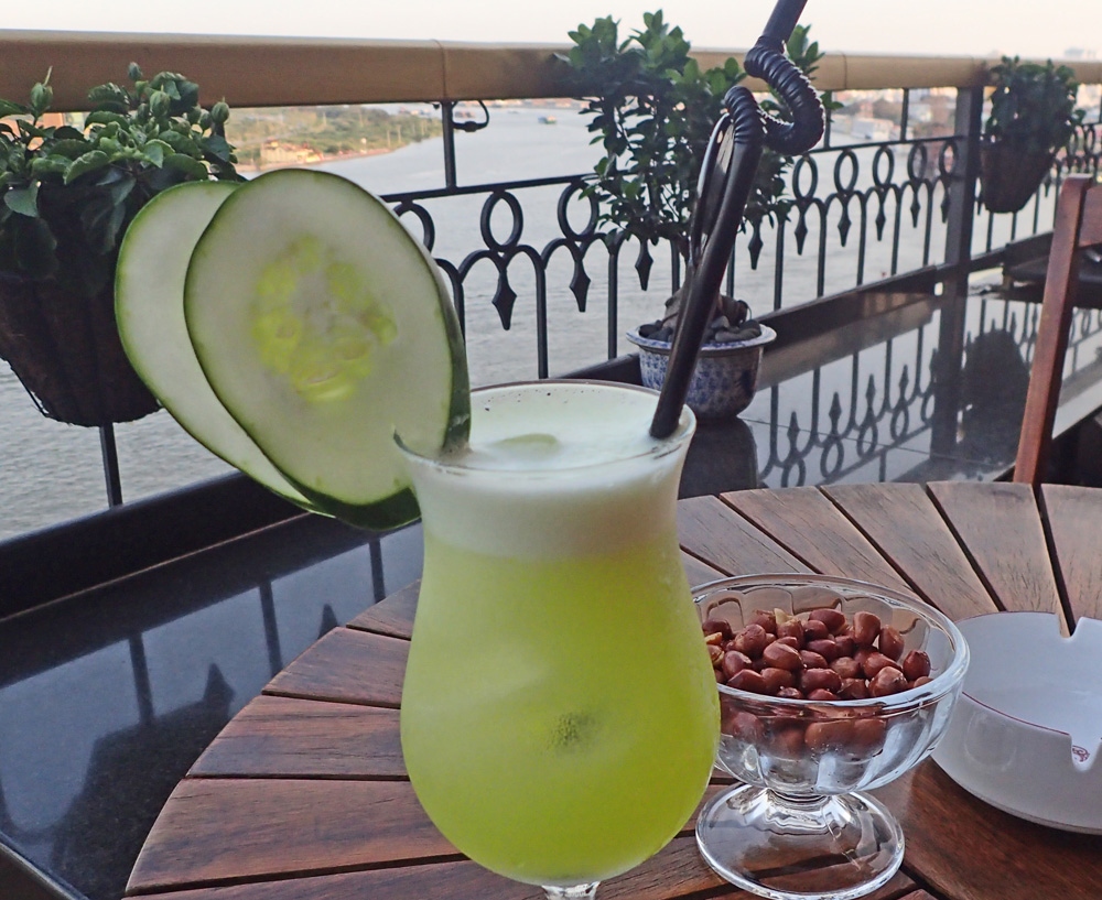 太平洋戦争の時に日本軍が接収していたゴージャスなクラシックホテル。ホーチミンで宿泊する際は、ぜひサイゴン川沿いのホテルに1泊したい。屋上にM BARという眺めの良いBARがあります。Majestinc Hotelというカクテルを頼んだら、ズッキーニ添えで歓待してくれました(笑)