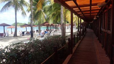レンタカーで行きました。対岸に首都フォール・ド・フランスを望む穏やかな湾内の景色は最高です。カリブの海に沈む夕陽も見る事ができます。フランス人たちのゴージャスなリゾートホテルです。私が宿泊したのは2018年12月で、300ユーロでした。マルティニークはもっと安いホテルでも十分楽しめますが、ここはさすがという感じでした。