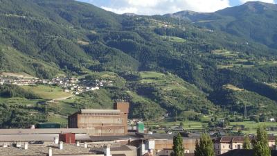 アオスタの市街にある普通のホテル。駐車場はホテル裏の地下にあり、そこへ到達するのに一方通行がありややわかりにくい。フロントの最初の係員は駐車場の場所の図を渡してくれただけだったが、次の係員は駐車場の入り口まで行って誘導してくれた。これは助かった。