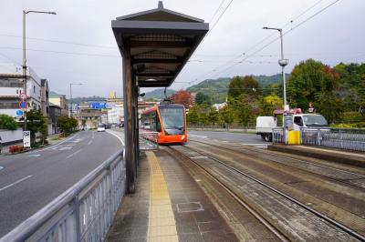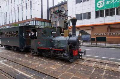 路面電車で次の目的地、道後公園に向かいますたまたま坊ちゃん電車に遭遇