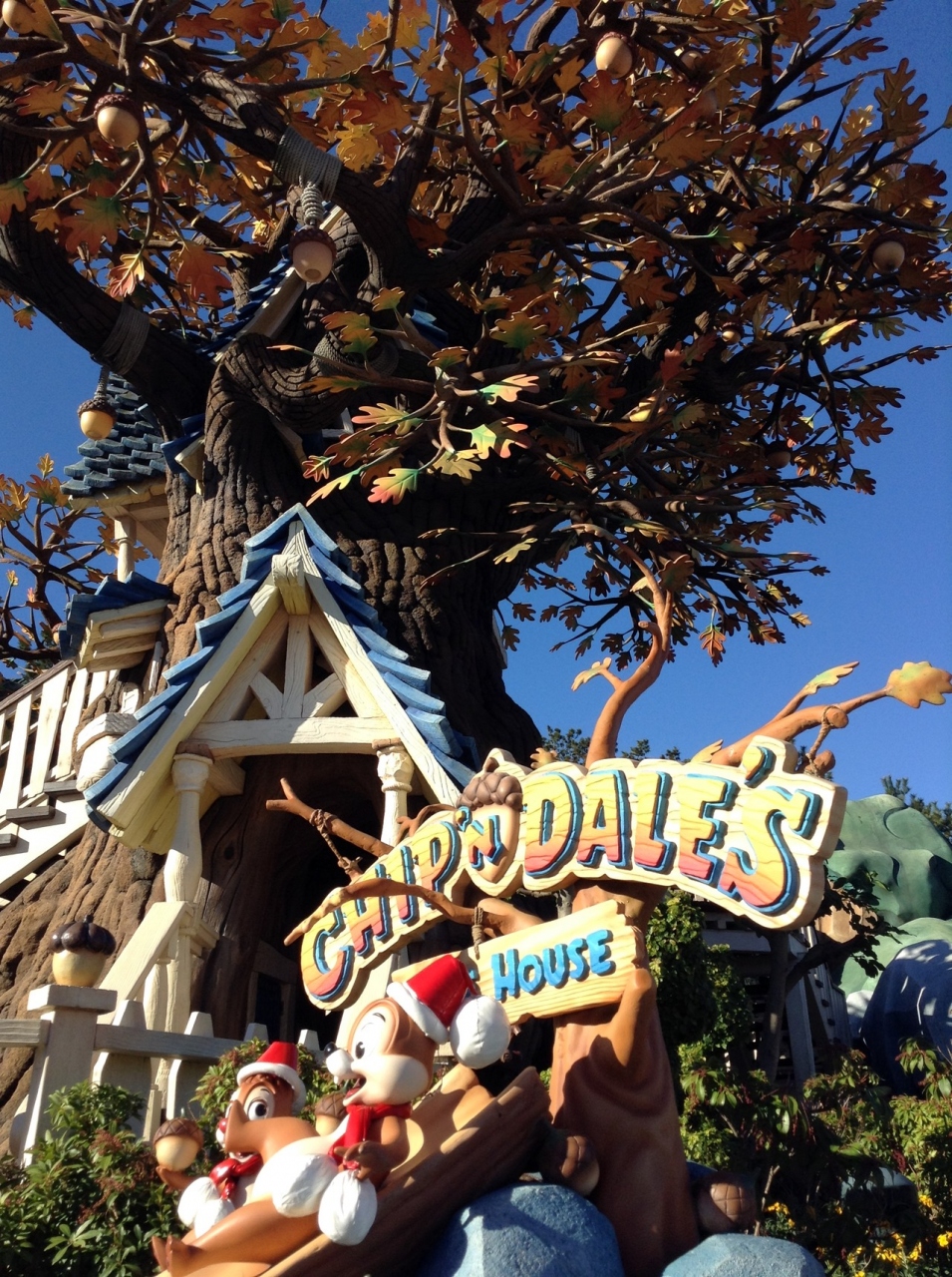 東京ディズニーランドのトゥーンタウンにあるチップとデールのお家です。比較的狭い階段を登って行くので、男性の方には窮屈かもしれません。