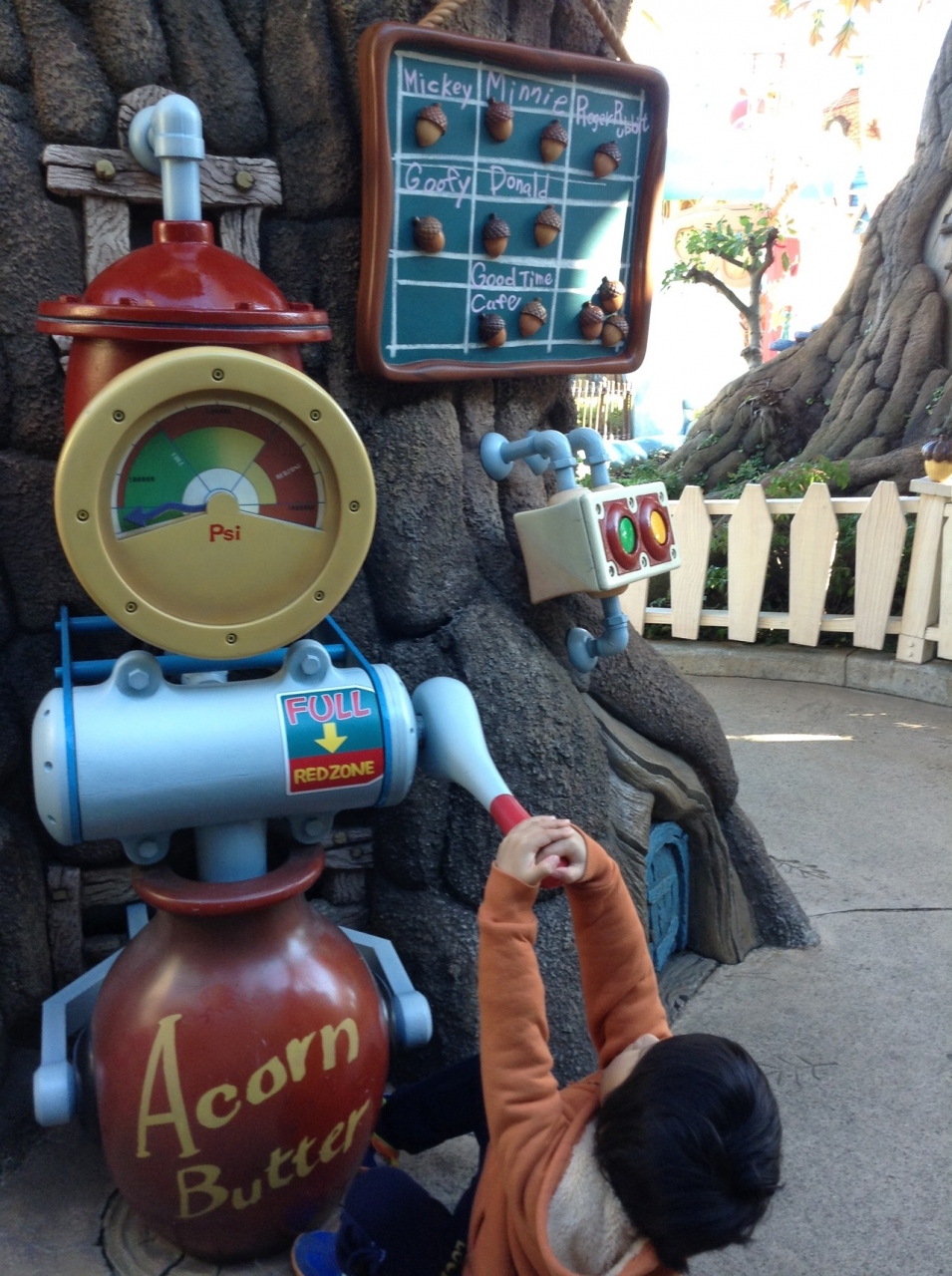 ただ、ドナルドのボートなどよりも見るところが少ないかなぁという印象。最後にどんぐりのバター製造機が置いてあって、子供はそれに夢中でした。- 旅行時期