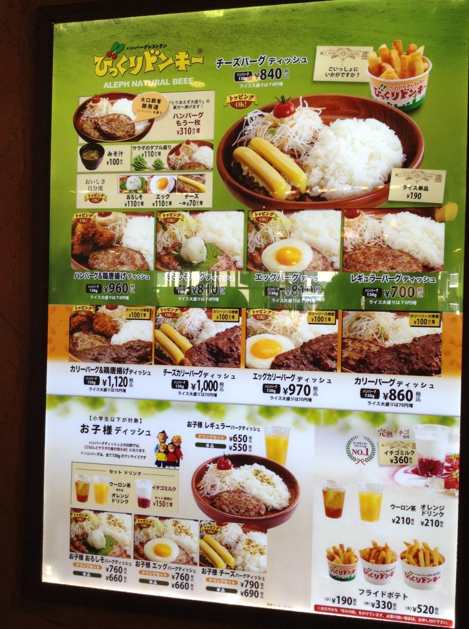 ここのびっくりドンキーはフードコート用にメニューが少ないです。子供がパイナップルが乗ったプレートが好きなのですが、それがなかったのが残念です・・・。