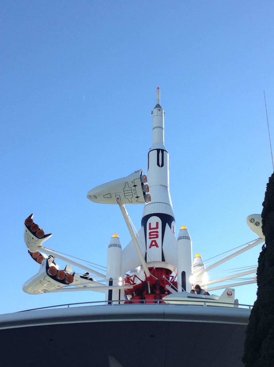 東京ディズニーランドのトゥモローランドにあるアトラクションです。ロケットに乗って、クルクルまわる乗り物です。