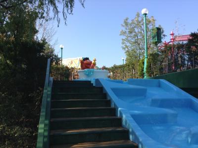 ゆっくり進む乗り物で、最後に少しだけ落ちるのですが、大人には物足りないかなぁ。列の進みが遅いので、短く見えても結構待ちます。土日などは、1時間待ち以上になることも多い乗り物です。なので、時間予約ができる『よやくのり』をオススメします。