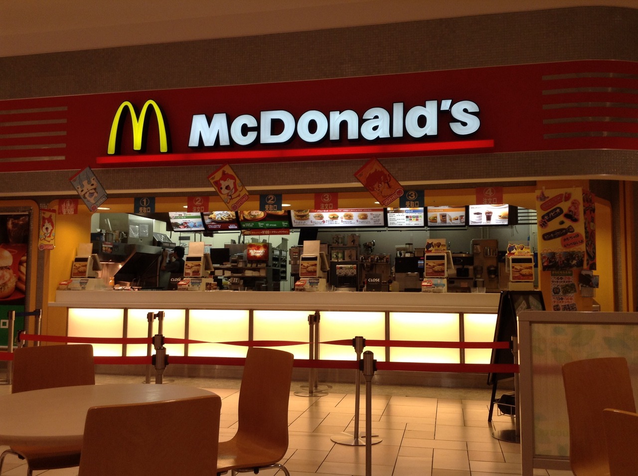 イオンモール草津のフードコート内にあるマクドナルドです。土日のお昼時が特に混んでいて、かなりの行列になります。ずら~っと並んでますね。でも、店員さんがたくさんいるので、回転率はいいです。待っても10分くらいだと思います。