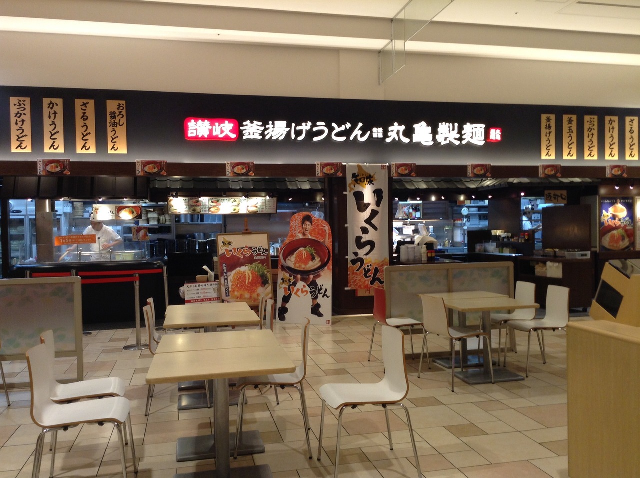 イオンモール草津の3Fフードコートにあるうどん屋さん。この『丸亀製麺』は、全国展開されているお店で、知っている方も多いのではないでしょうか?