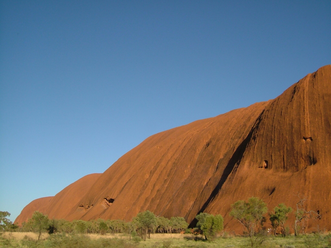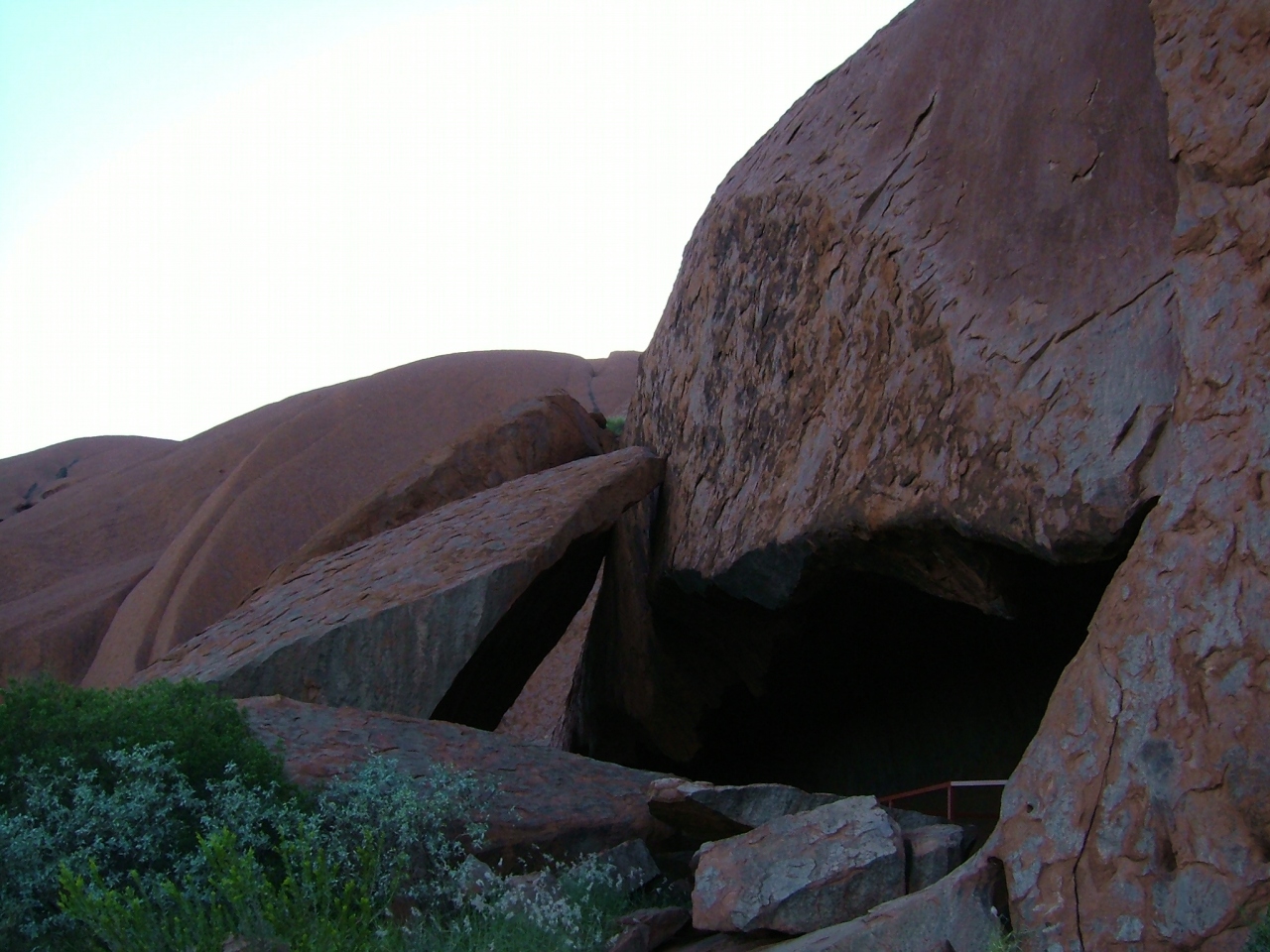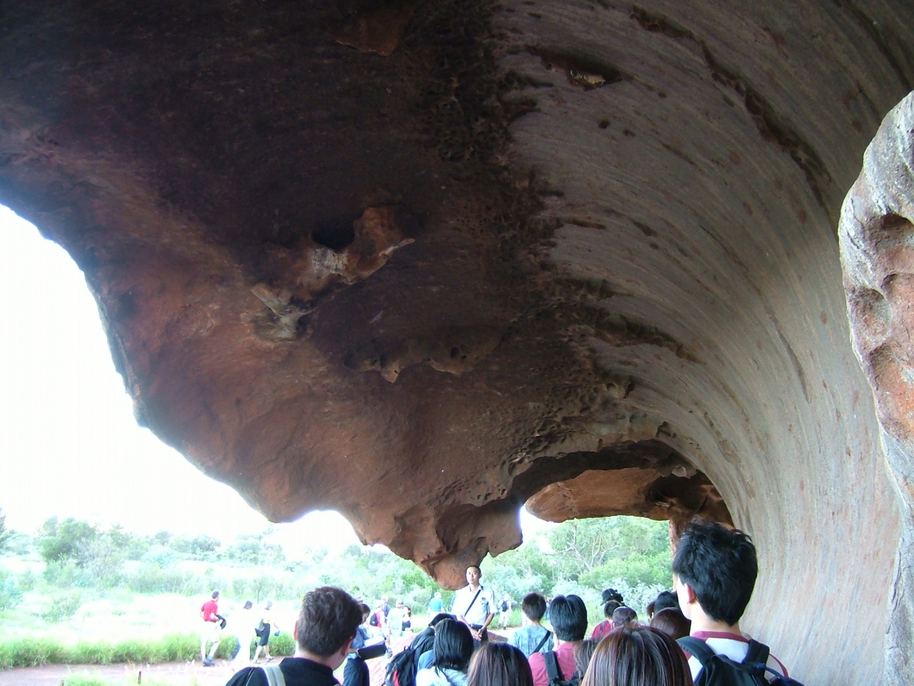 登山は強風の為できなかったので、ウルルの探索をしました。遠めに見ると一枚岩に見えるウルルも、近くで見ると風化で削られていたり、穴が開いていたりして興味深かったです♪