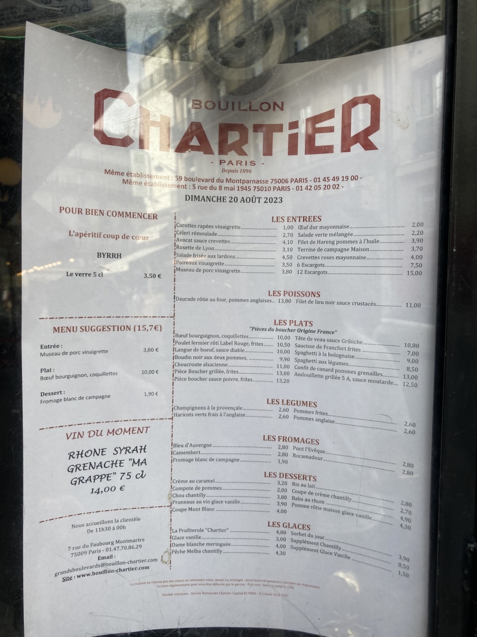 パリの大衆食堂として有名なシャルティエ。行ってみたいと思い、ホテルから15分くらい歩いて行きました。