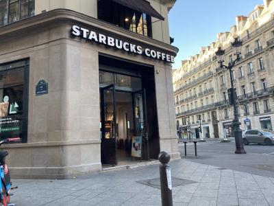黒に白地のロゴマークで、シャンゼリゼ通りに合うオシャレな外観でした。