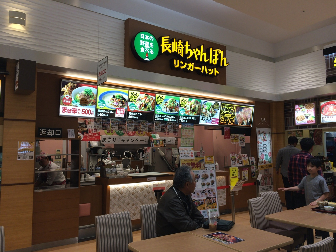 フードコート自体は、そんなに広くはなかったです。リンガーハットさんは、長崎ちゃんぽんのお店で、野菜がたっぷりのったちゃんぽんが定番です。野菜と一緒に入っているかまぼこがアクセントきいていて、美味しいですよ。- 旅行時期