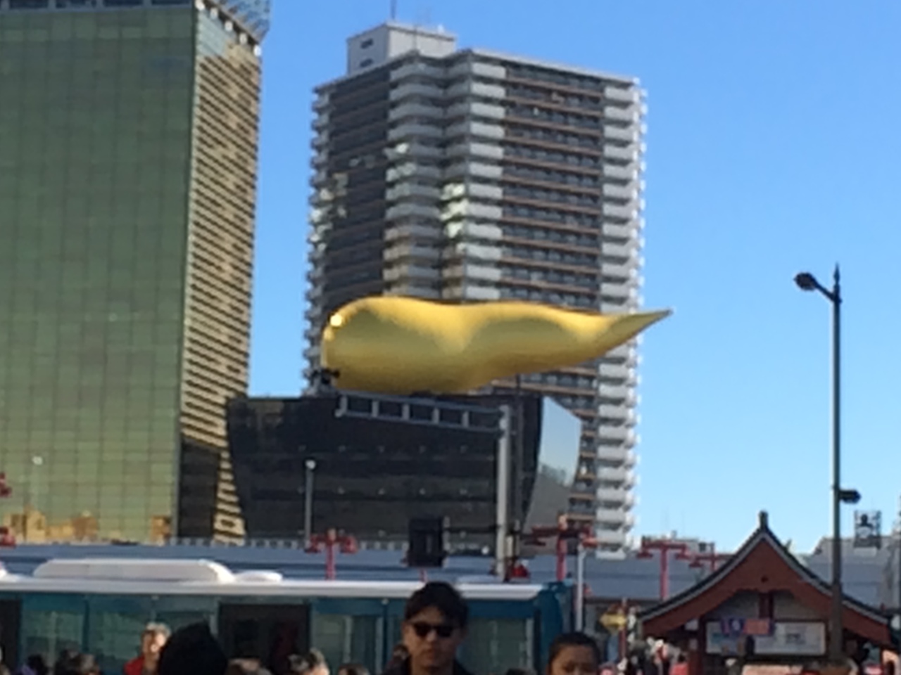 15年以上前に浅草に訪れたのですが、雷門の次に印象に残っていたのが、この金色のオブジェです。この金色のオブジェって、ビールの泡なんですかねぇ?
