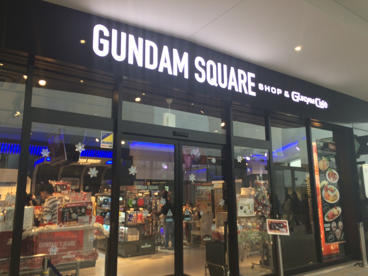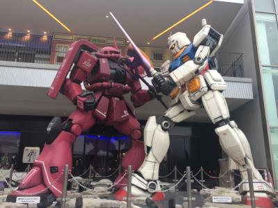 大阪のエキスポシティにあるガンダムのカフェです。お店の前には、大きなガンダム達がいるので、すぐに見つかります。