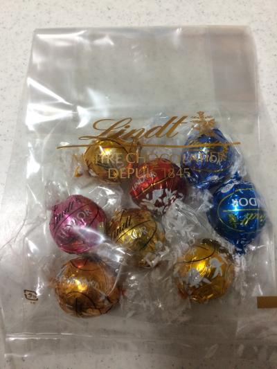 今回、リンドールの量り売りを購入しました。10種類以上の色んな味のリンドールから好きなものをチョイス。4個くらい欲しかっただけですが、7個か8個くらい購入しないと、規定量を超えないみたいで、結局8個購入しました。