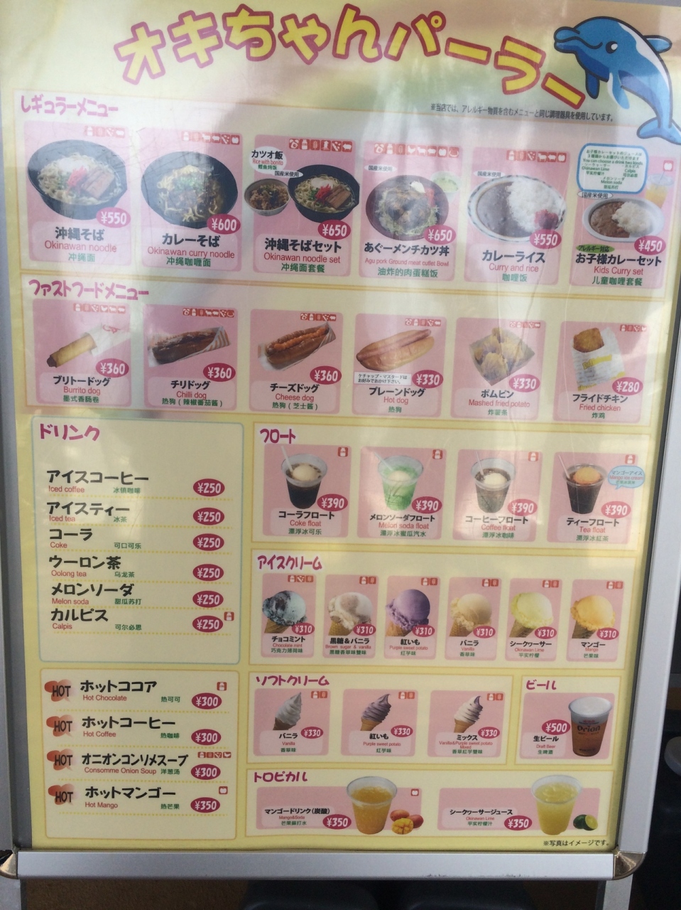軽食が食べられるお店ですが、メニューはホットドッグと沖縄そばとカレーくらいしかありません(>_<)しかも、屋外なので暑い!行ったのが10月だったのですが、汗をダラダラたらしながら食べました。
