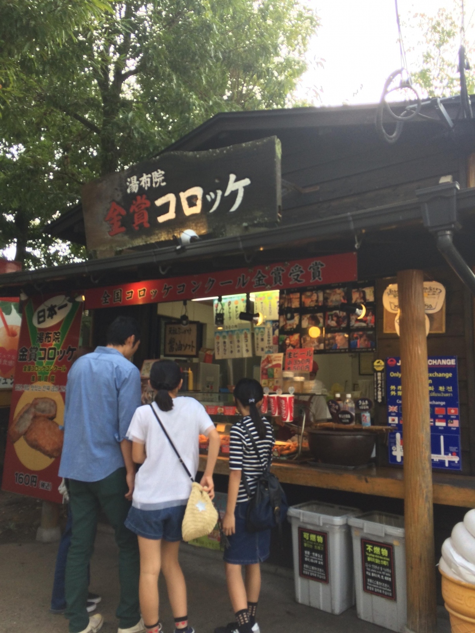 湯布院の湯の坪街道にあるコロッケ屋さん。ガイドブックなどには必ず載っていて、湯布院を代表とするお店となっています。