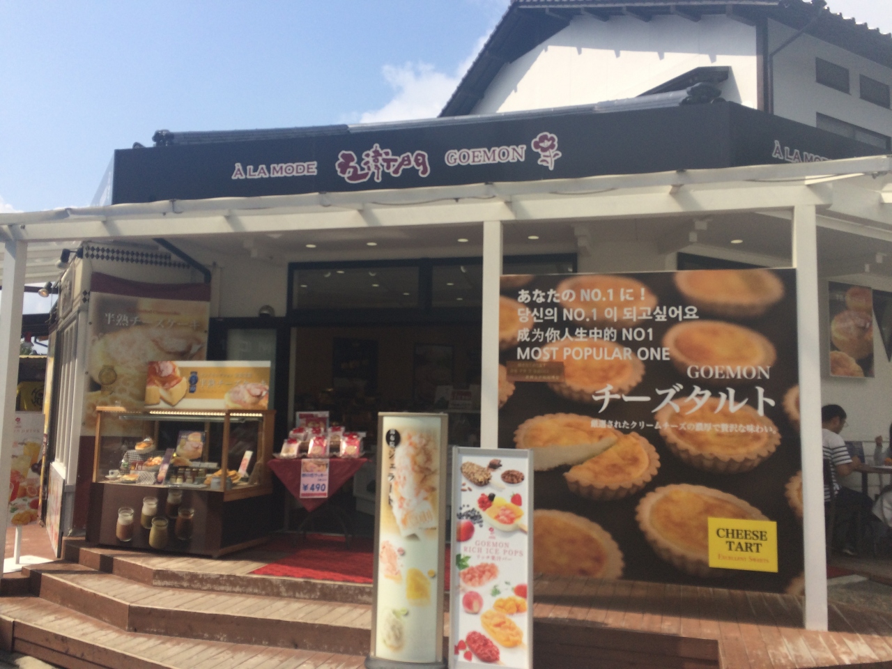 湯布院の湯の坪街道にあるお菓子屋さん。チーズタルトの垂れ幕が気になって立ち寄りました。