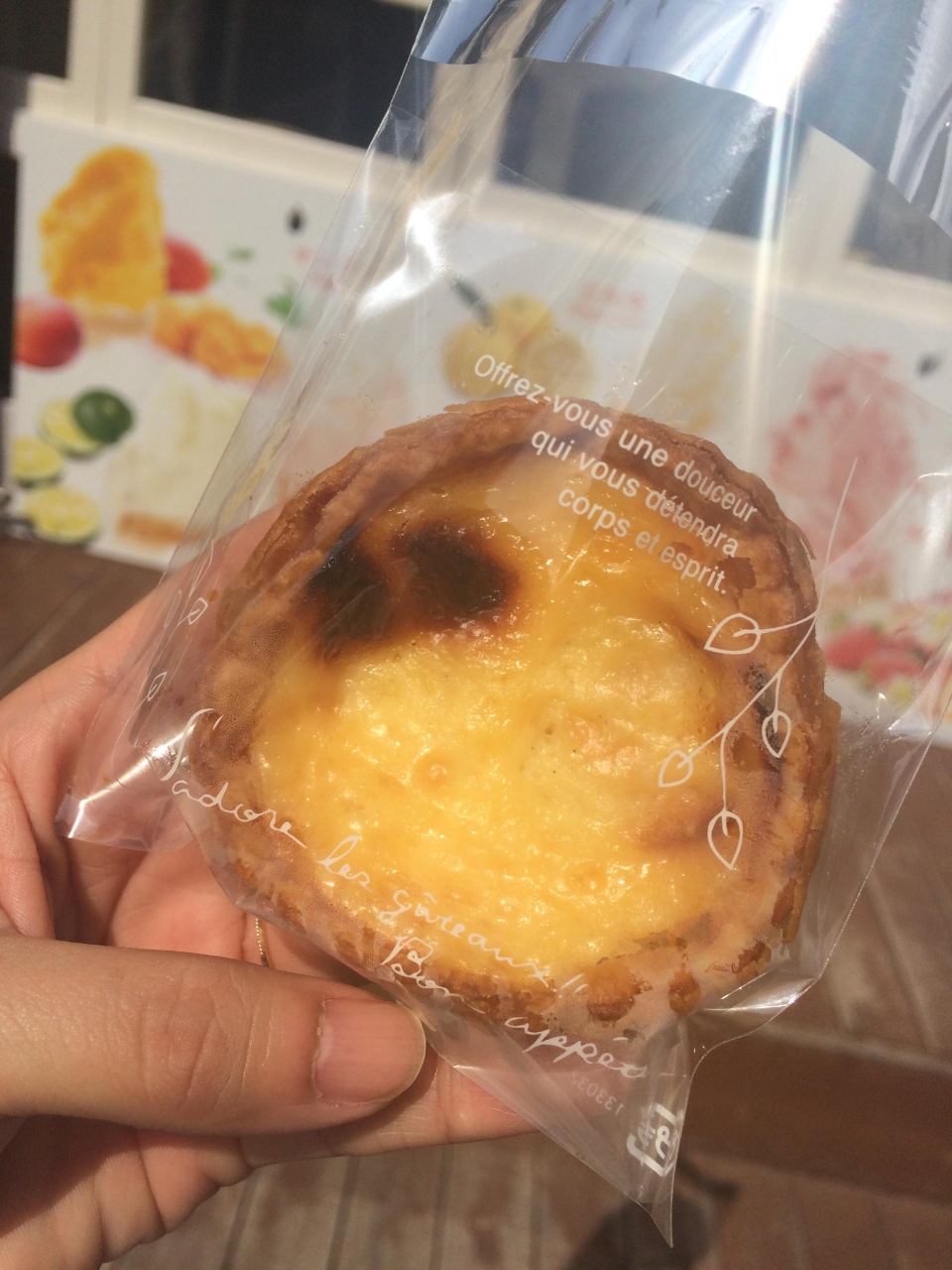 チーズタルトを買おうと思っていましたが、その隣にエッグタルトが☆エッグタルトが大好きなので、エッグタルトを買いました。