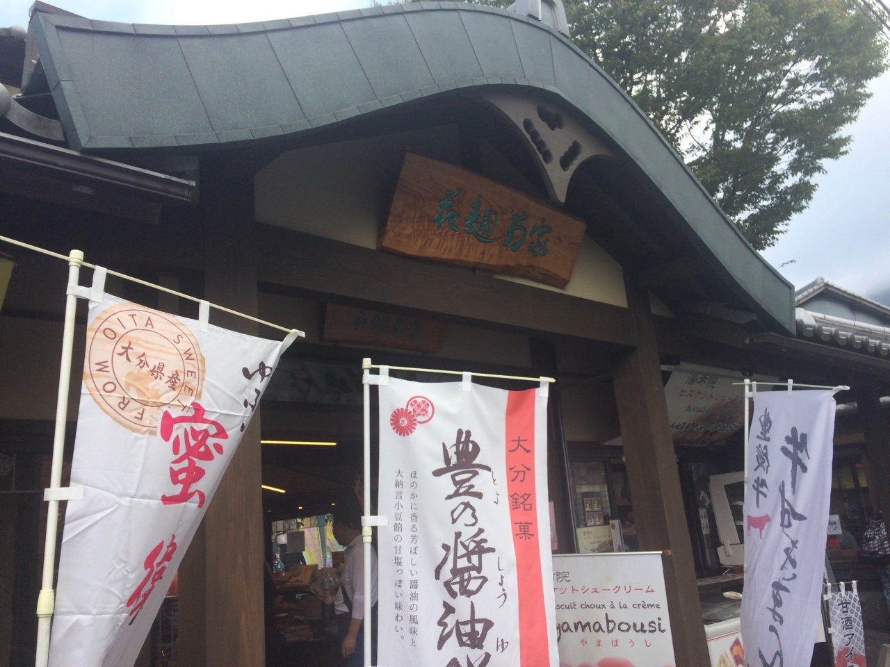 湯布院の湯の坪街道にある和菓子屋さん。湯の坪横丁の入り口にあるお店です。このお店は、ぷりんどらが有名で、お土産に買おうと立ち寄りました。