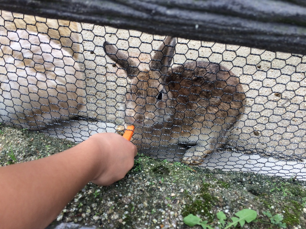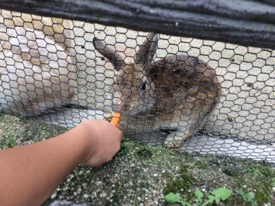 園内にはフラミンゴやカピパラ、ウサギ、ポニーがいて、おやつをあげることができます。おやつは一皿100円で、子供が2皿ずつあげたので、計400円に。結構高くつきました。