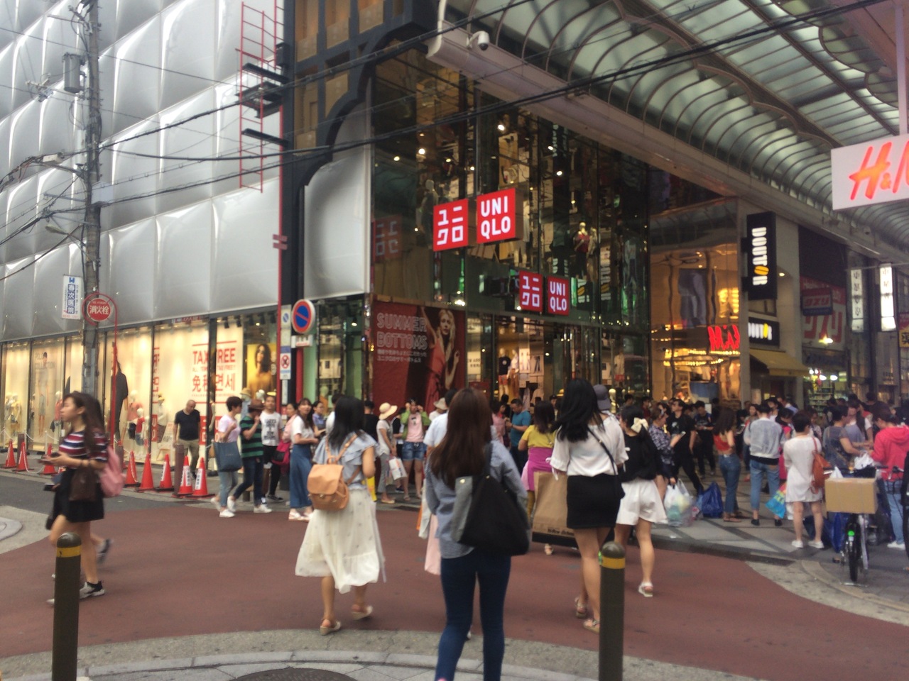 心斎橋筋には韓国や中国からの旅行者が多いので、このユニクロにも多くの海外のお客さんが買い物を楽しんでいました。- 旅行時期