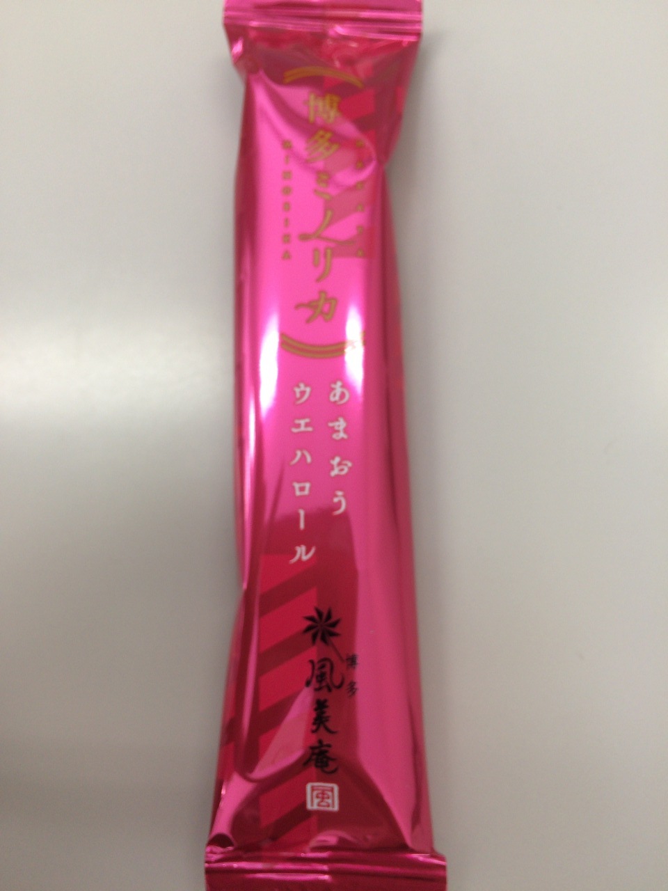 福岡のお土産屋さん。あまおうウエハーロールを頂きました。博多風美庵は色んなお土産を売っているので、福岡のお土産として最適です。