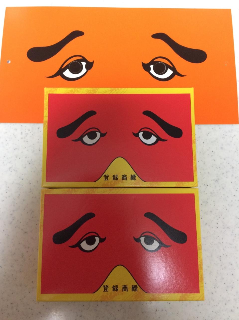 博多の郷土芸能として庶民の間で親しまれている博多仁和加の半面を形どったおせんべい。なんとも言えない顔が特徴で、見た目もユーモアたっぷりでした。
