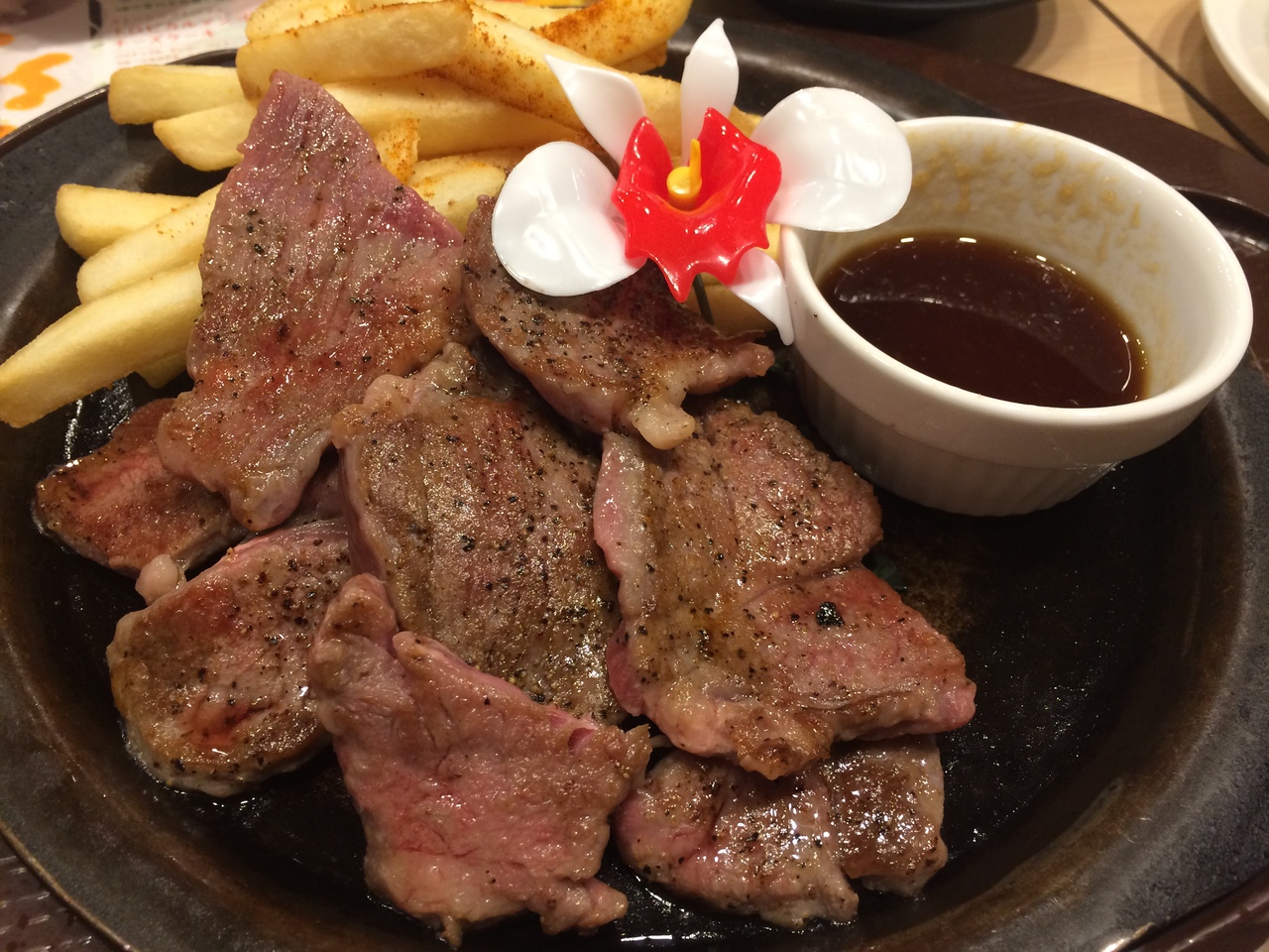 今回、ガストでハワイフェアをやっていて、変わったステーキがあって挑戦してみました。味はハワイの味と言われると微妙ですが、美味しかったです。