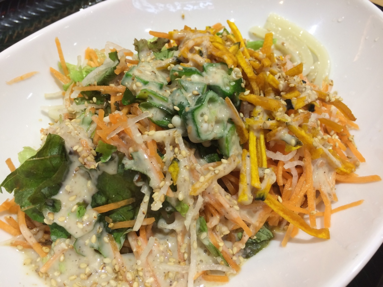 野菜がたっぷり乗っているので、健康的で良さそう☆ただ、ゴマだれがこれでもかというくらいかかっていたので、結構カロリーがあるかも~!