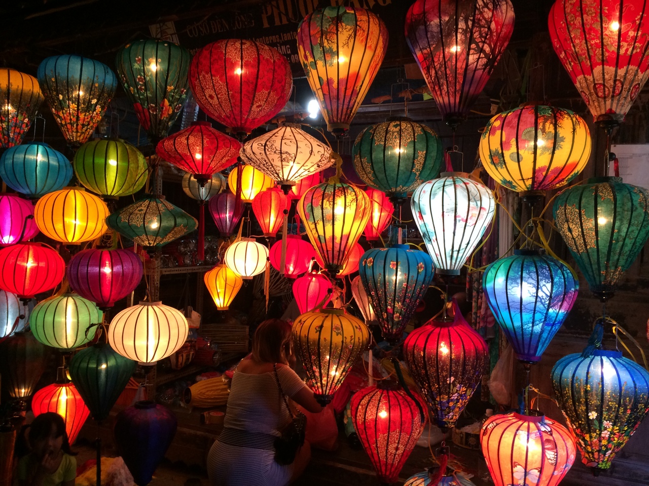 ベトナム、ホイアンのアンホイ島で開催されるナイトマーケット。ここで、ガイドブックのようなランタンの写真を撮ることができます。