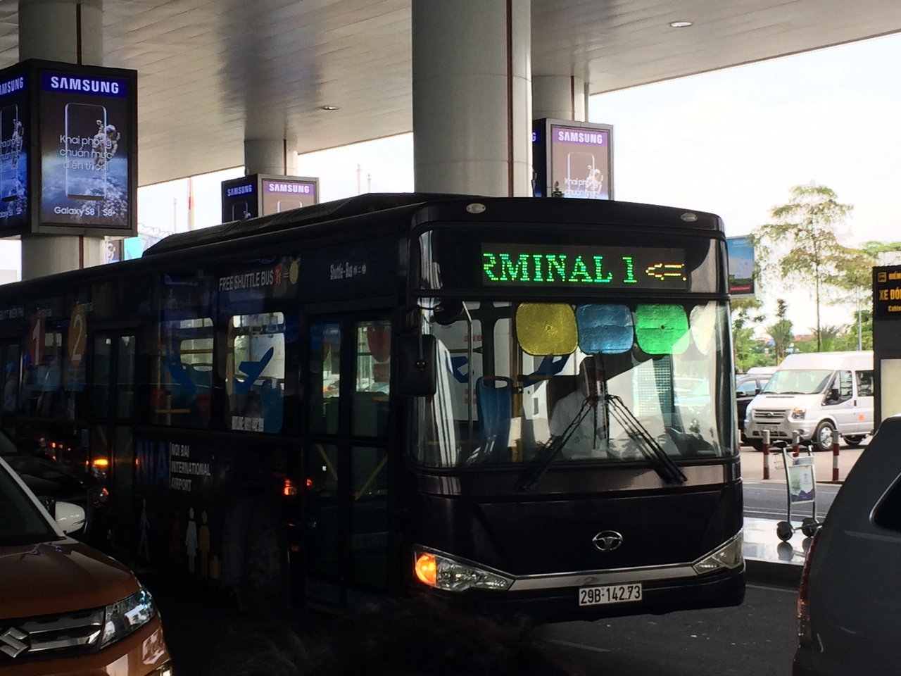 ベトナムのハノイにあるノイバイ空港のターミナル間移動のバスです。ハノイで国内線と国際線の乗り継ぎの際は、これに乗らないといけません。