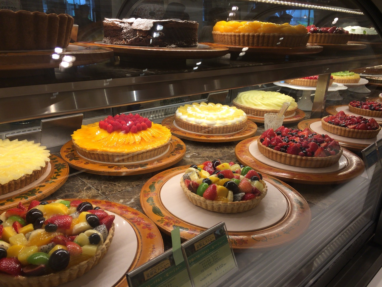 店内のショーケースには色鮮やかなフルーツタルトがずらりと並んでいて、どれも美味しそう☆1ピース600円越えのものが多く、宮崎県産のマンゴーを使ったタルトは、1ピース1954円もしました。びっくり!!