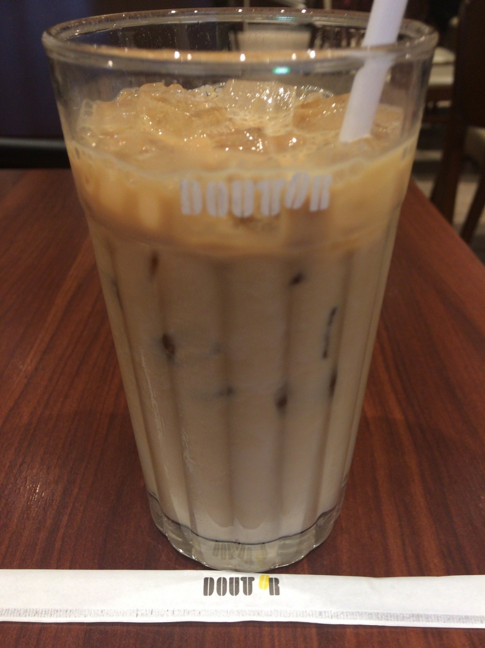 今回は、アイスカフェラテを頼みました。ドトールのラテは、ちょっとミルクが少なめなので、多めにしてもらいました☆ドトールは安くて美味しい♪