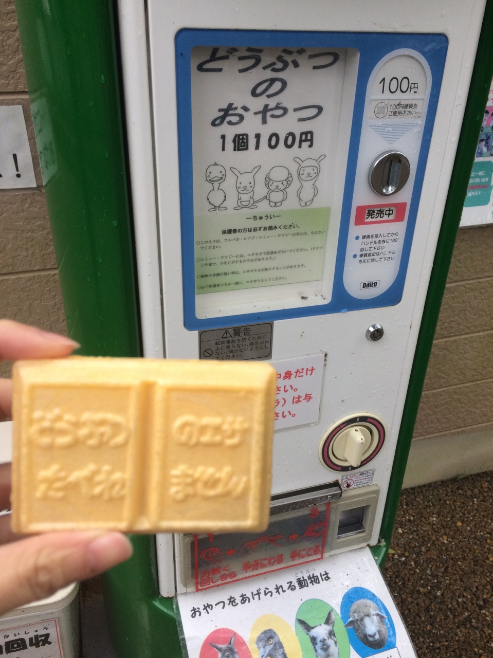 アルパカやワラビー、エミュー、羊にはおやつがあげられます。1個100円で、自動販売機で買うことができました。アルパカ、エミュー、羊はすごい勢いで食べに来るのですが、ワラビーだけはなかなか食べなくて、食べてくれるまで必死であげていました。笑