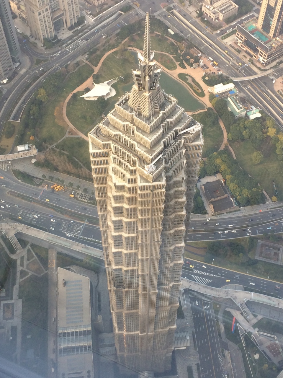 上海の浦東エリアにある高層ビルです。とても変わった形をしている外観なので、すぐに見つけることができます。