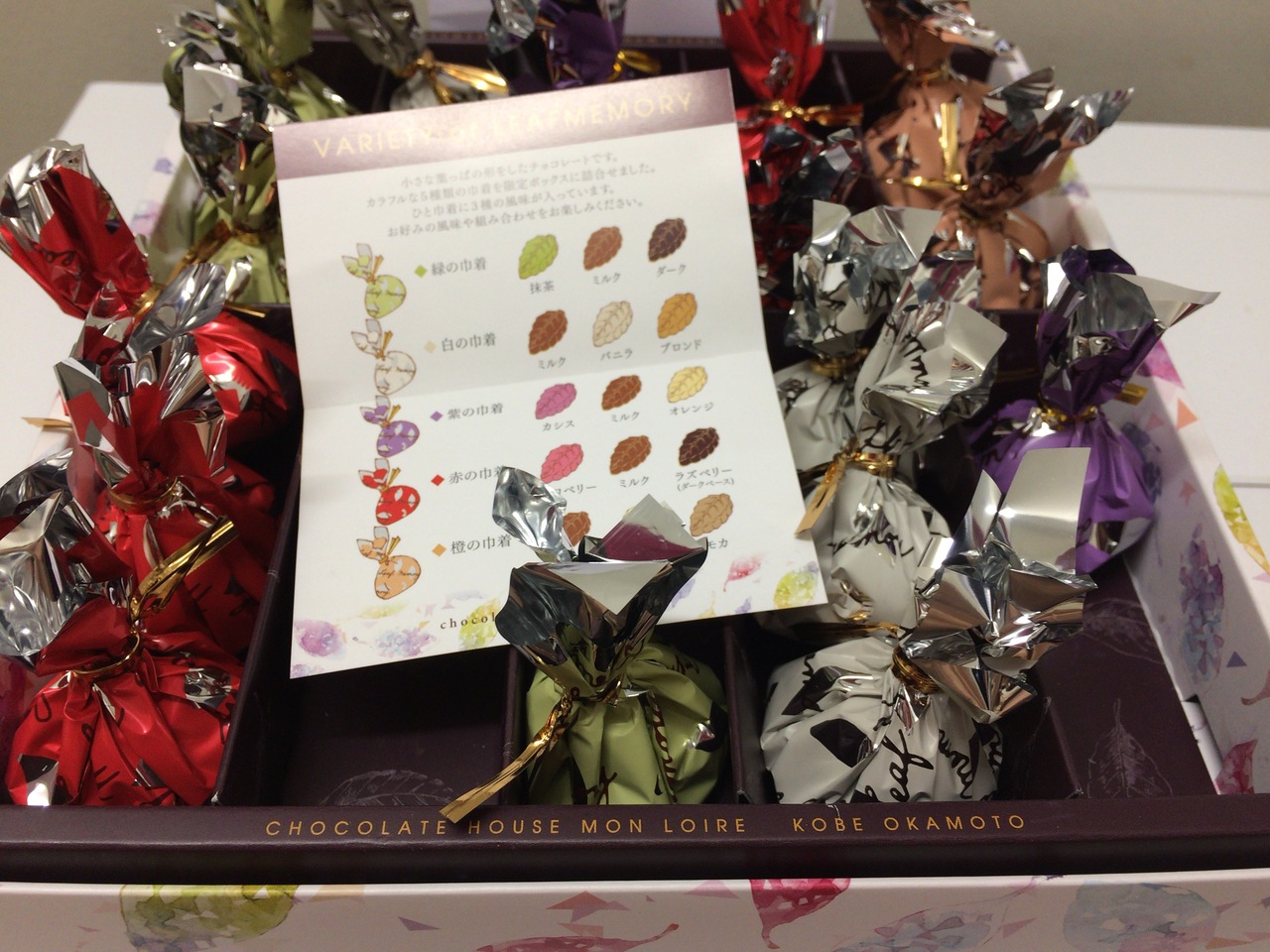 包み紙の中に、リーフ型の小さなチョコレートがいくつか入っていて、色々な味が楽しめていいです。値段もそんなに高くないので、手土産なんかにいいですよ♪- 旅行時期