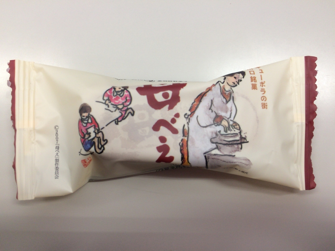 今回、母べえというお菓子をいただきました。2007年公開の『母べえ』の公開記念菓子のようです。タイアップで作らはったのかな?すごい!!