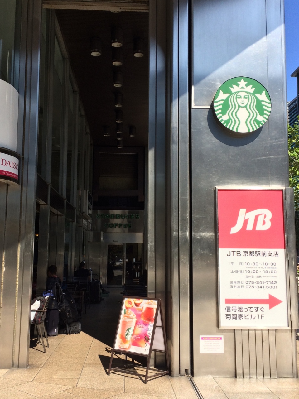 京都タワーの1階にあるスターバックス。京都駅からとっても近いので、アクセスがよく利用しやすいです。