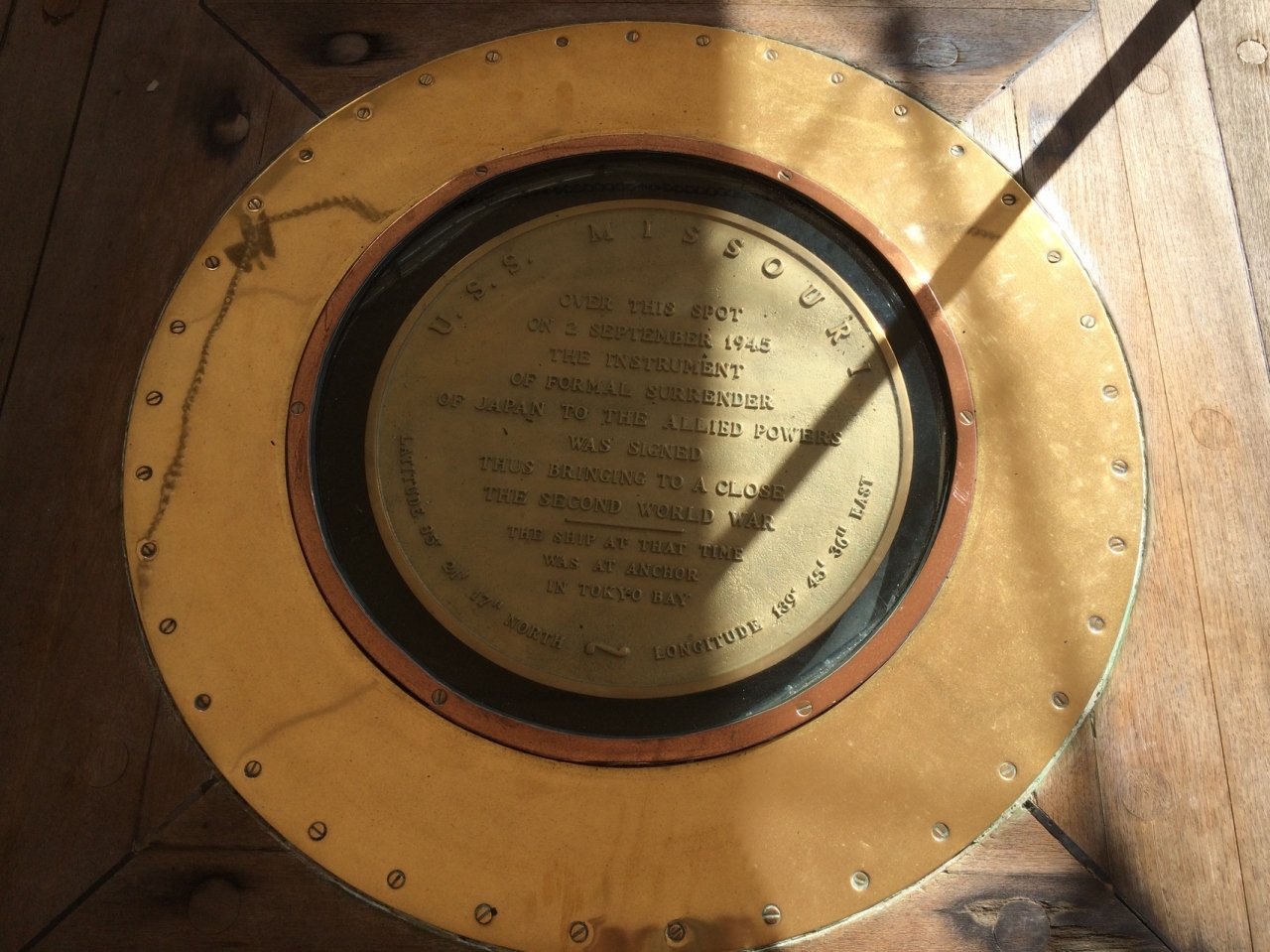 太平洋戦争の日本の降伏調印式場となった戦艦としても有名です。艦内には、調印した場所もあって、感慨深いものがありました。
